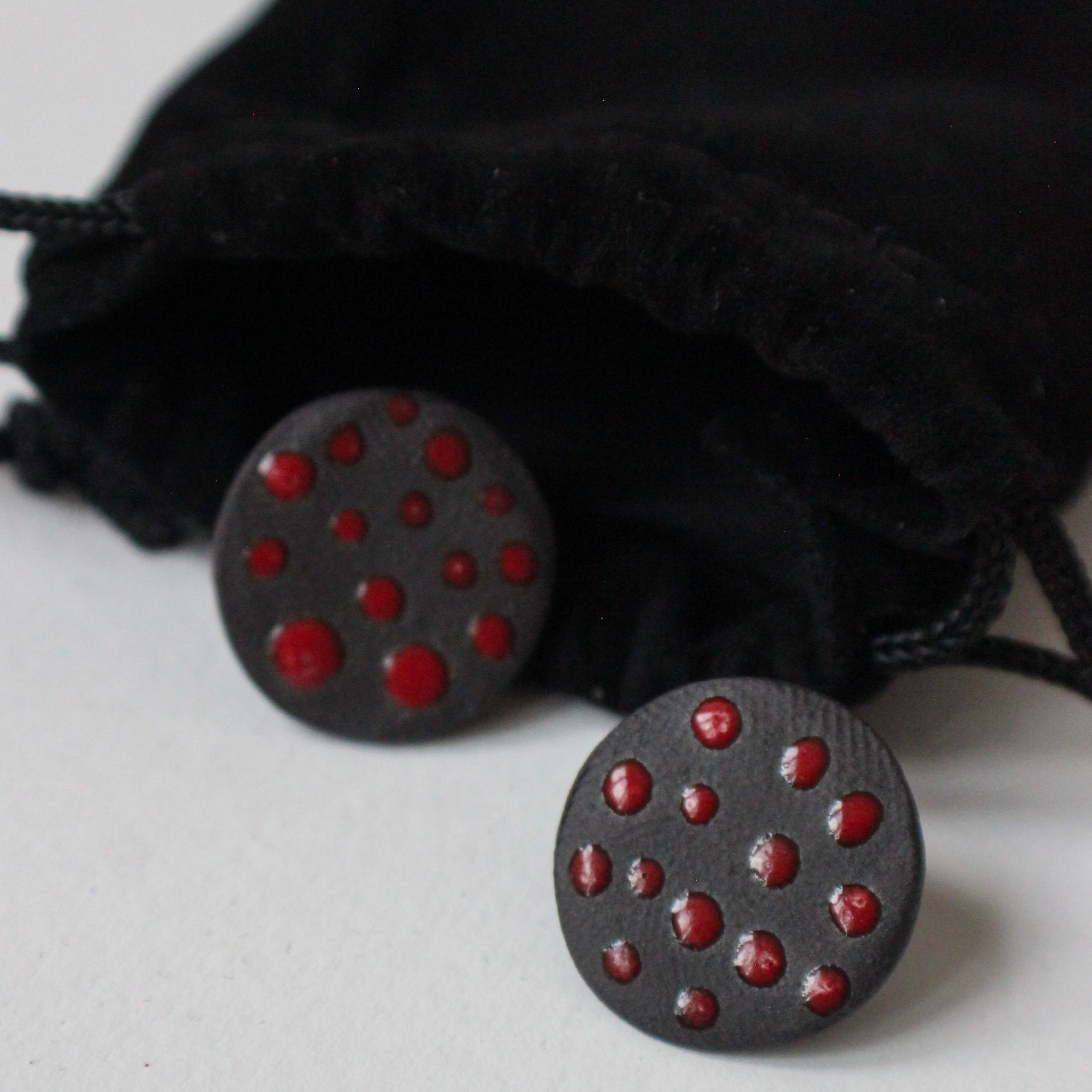 minđushe. crvene tachkice.
